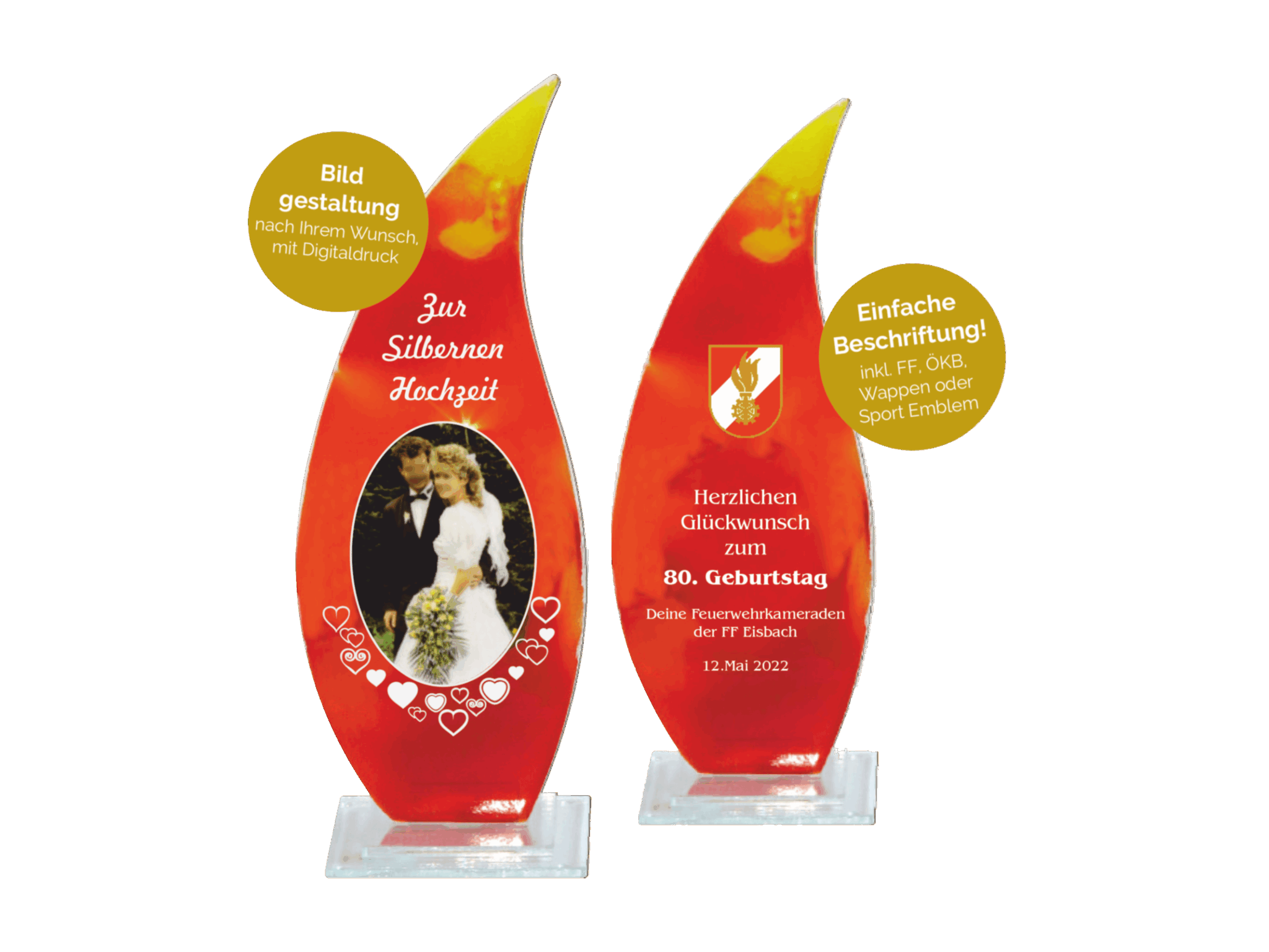 Die FF Schmelzglas Flamme ist ein schönes, individuelles Geschenk für Feuerwehren.