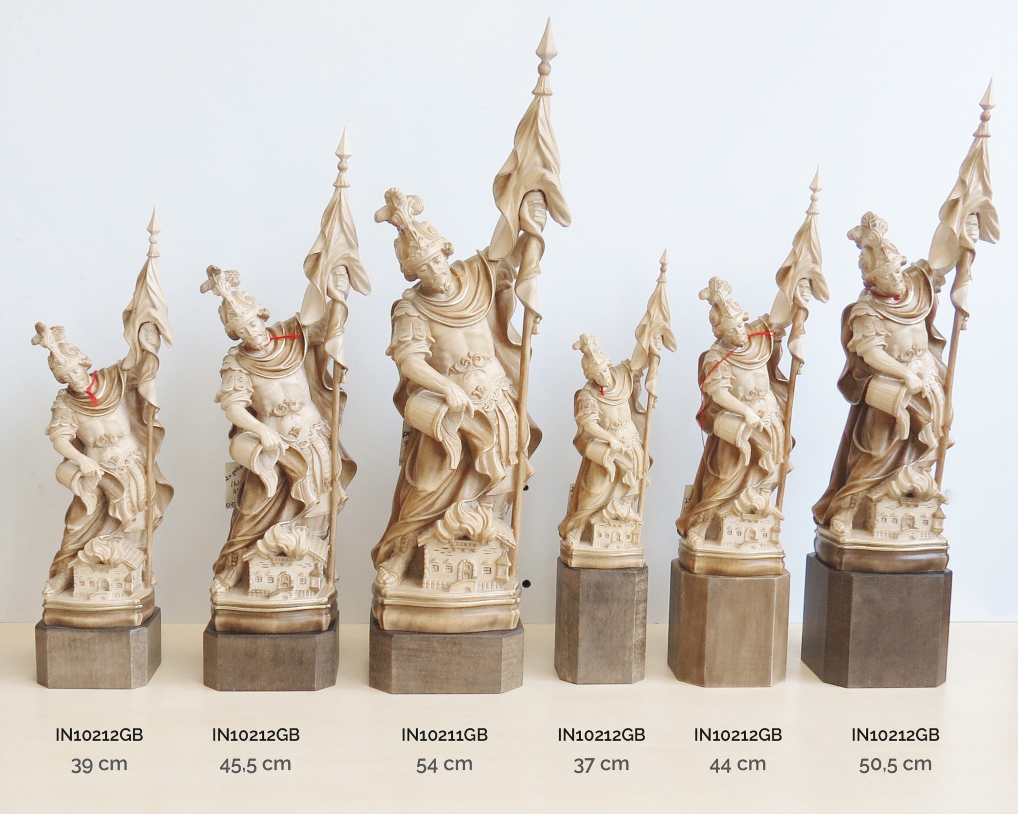 Die Figur Hl. Florian Insam in Naturoptik ist aus echtem Holz gebeizt. Sie kann in verschiedenen Höhen bestellt werden.