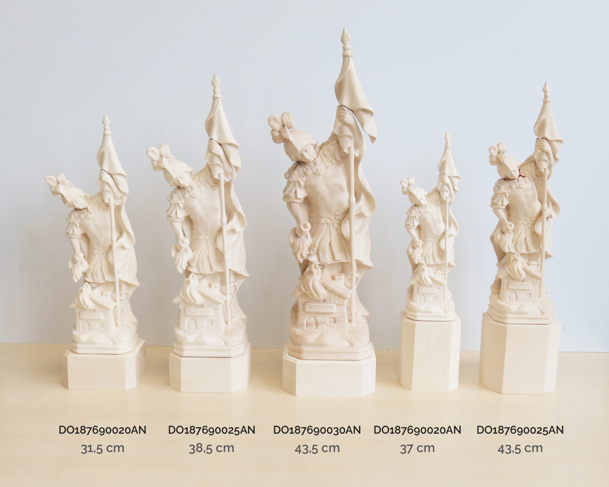 Die Figur Hl. Florian Dolfi in Naturoptik ist aus echtem Holz geschnitzt. Sie kann in verschiedenen Höhen bestellt werden.