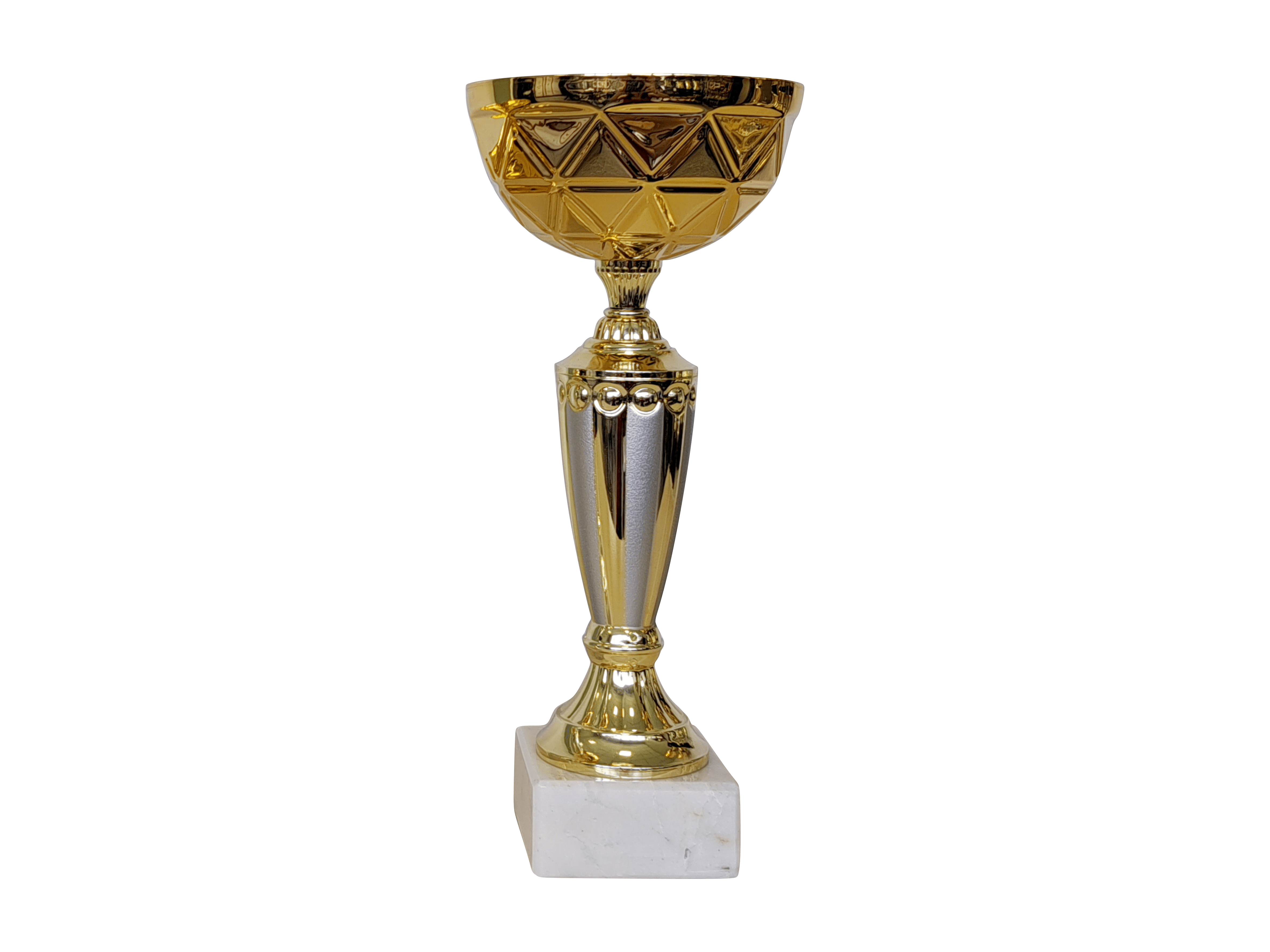 Unsere Pokalserie „MANUEL“ in Gold/Silber. Erhältlich in verschiedenen Größen und somit optimal für unterschiedliche Platzierungen. Auf Wunsch auch mit Gravurschild (am Sockel befestigt).