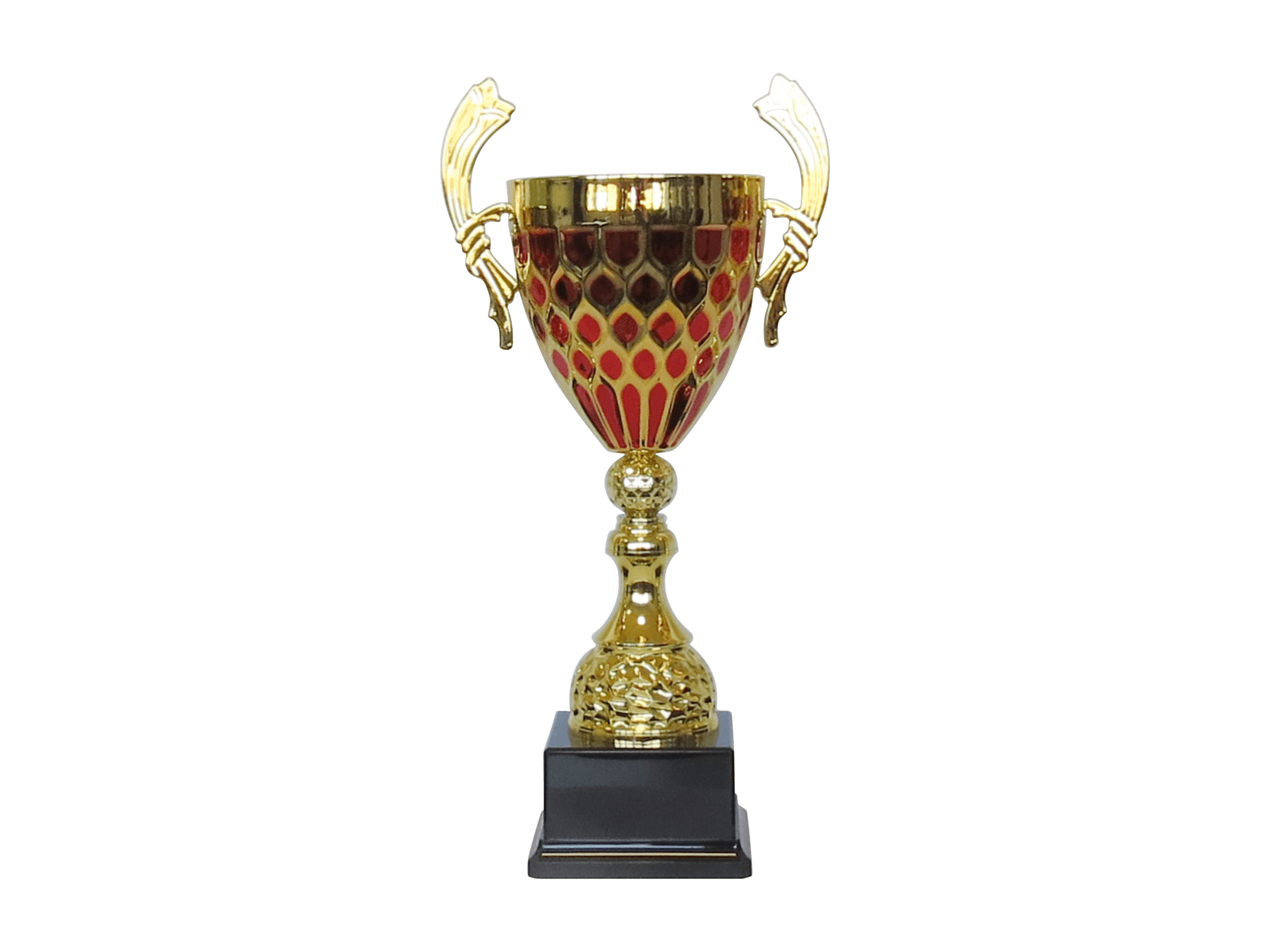 Unsere Pokalserie „PAULA“ in Gold/Rot. Erhältlich in verschiedenen Größen und somit optimal für unterschiedliche Platzierungen. Auf Wunsch auch mit Gravurschild (am Sockel befestigt).