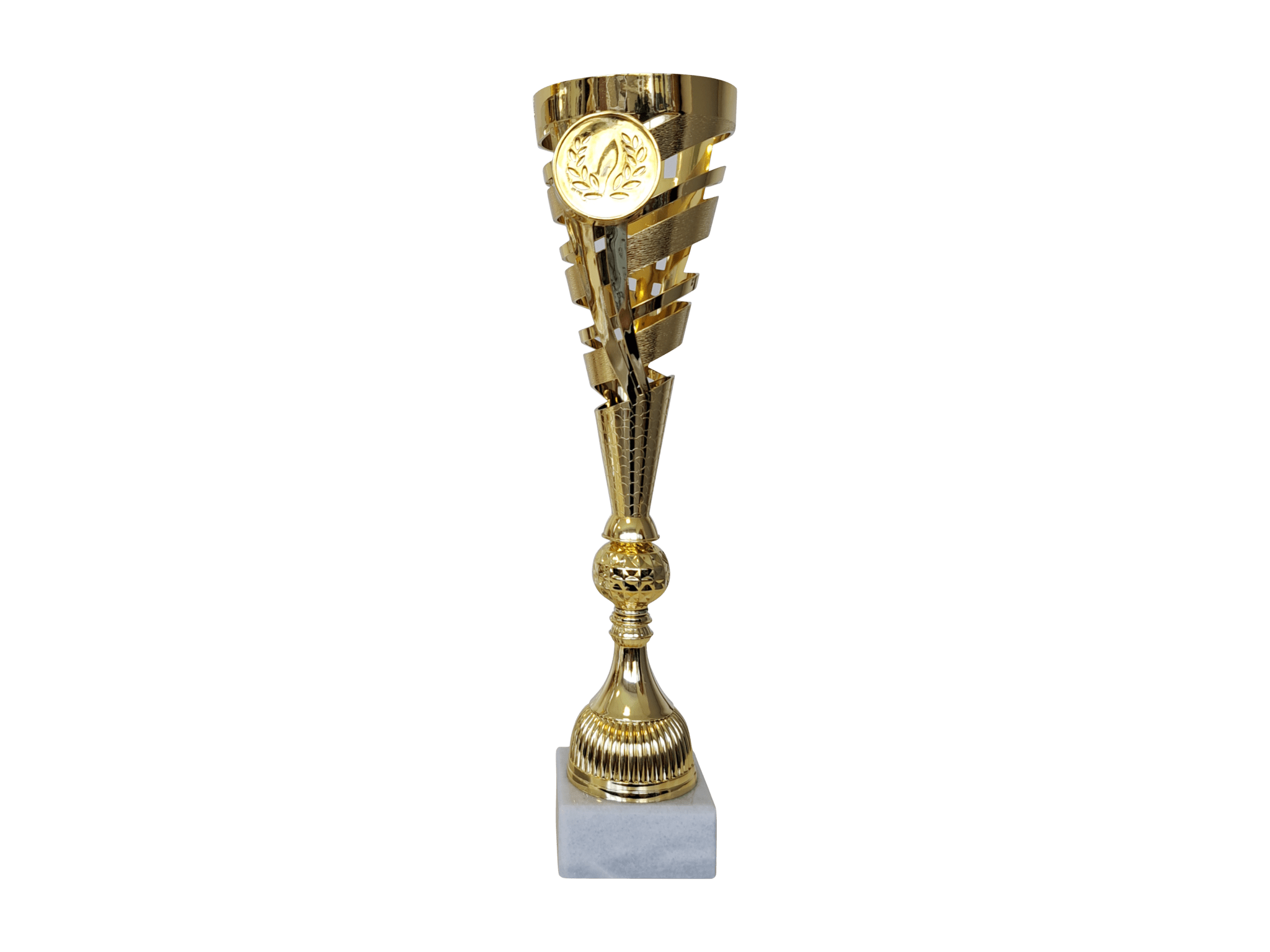 Unsere Pokalserie „STEYR“ in Gold. Erhältlich in verschiedenen Größen und somit optimal für unterschiedliche Platzierungen. Auf Wunsch auch mit Gravurschild (am Sockel befestigt) und/oder einer Auflage.