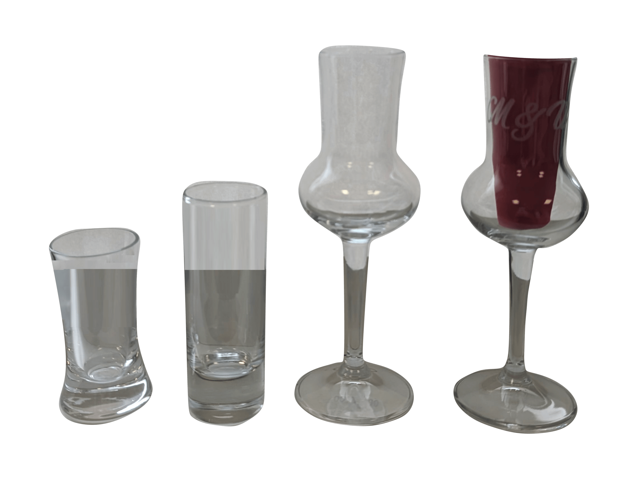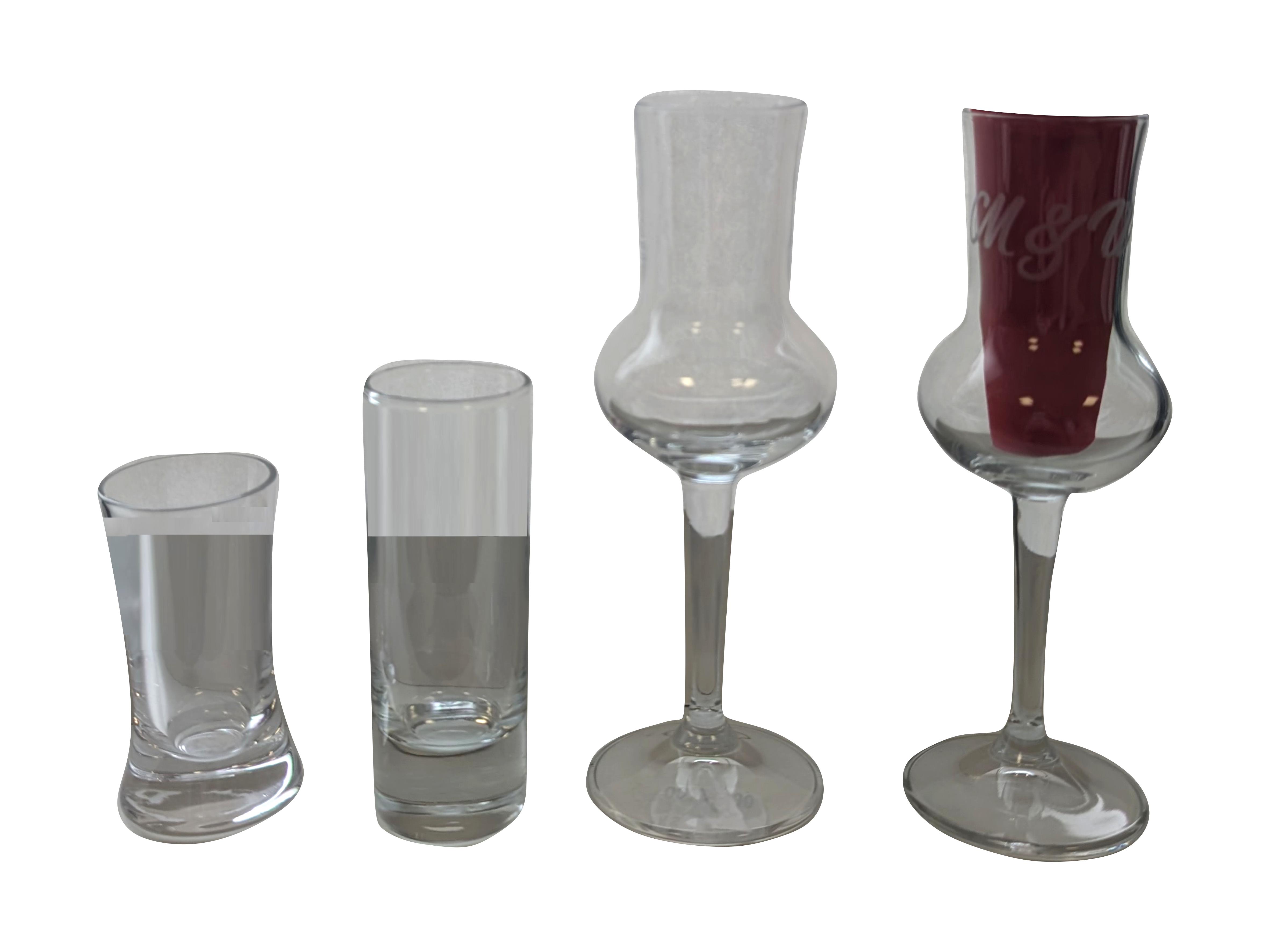 Schnapsgläser verschiedenen Größen aus unserem Sortiment, auch mit eigener Gravur möglich.