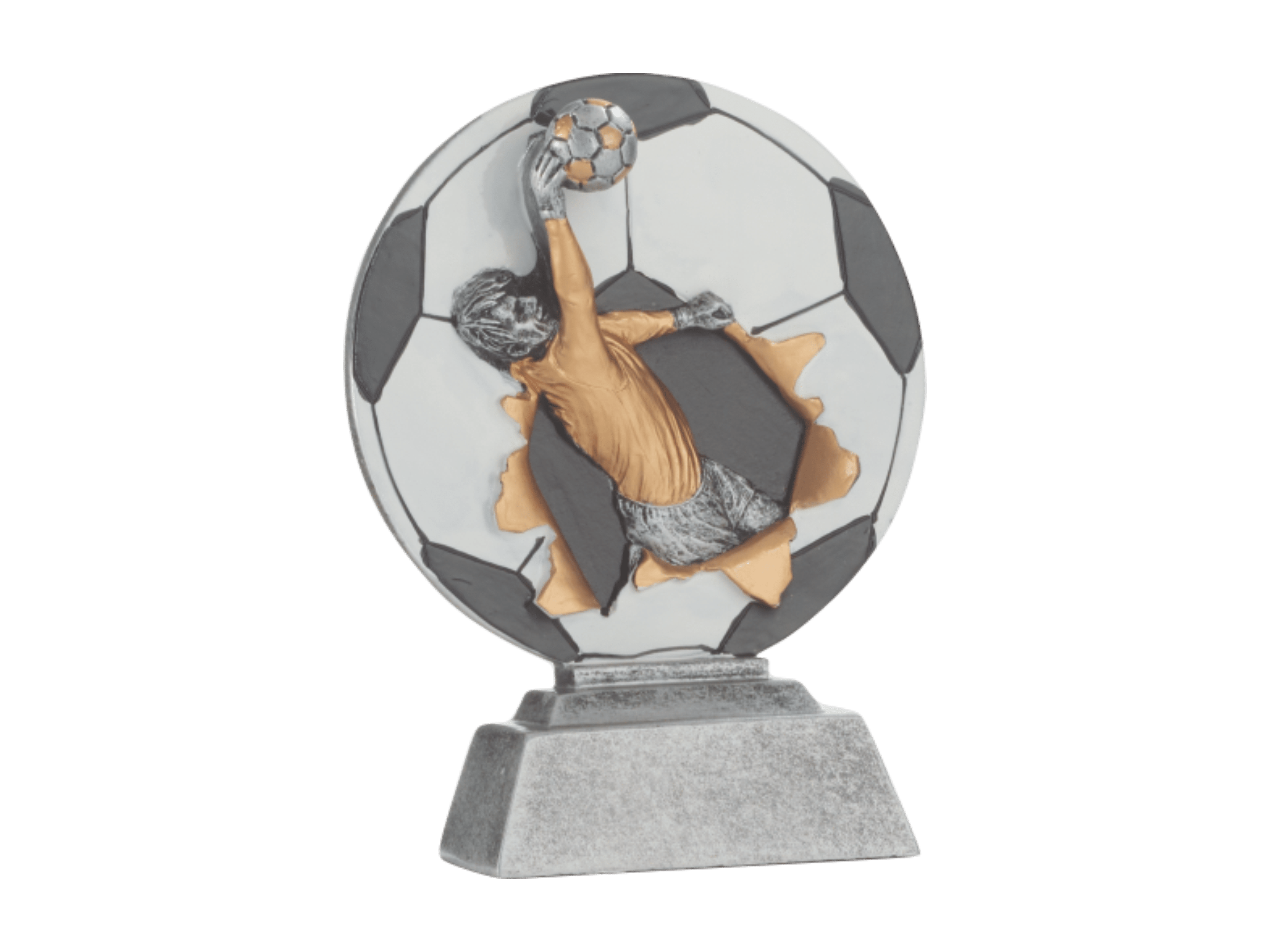 Unsere Spezialtrophäe „TORMANN 1“ aus Resin ist mit einer Größe von 16cm eine optimale Auszeichnung für Torwarte.