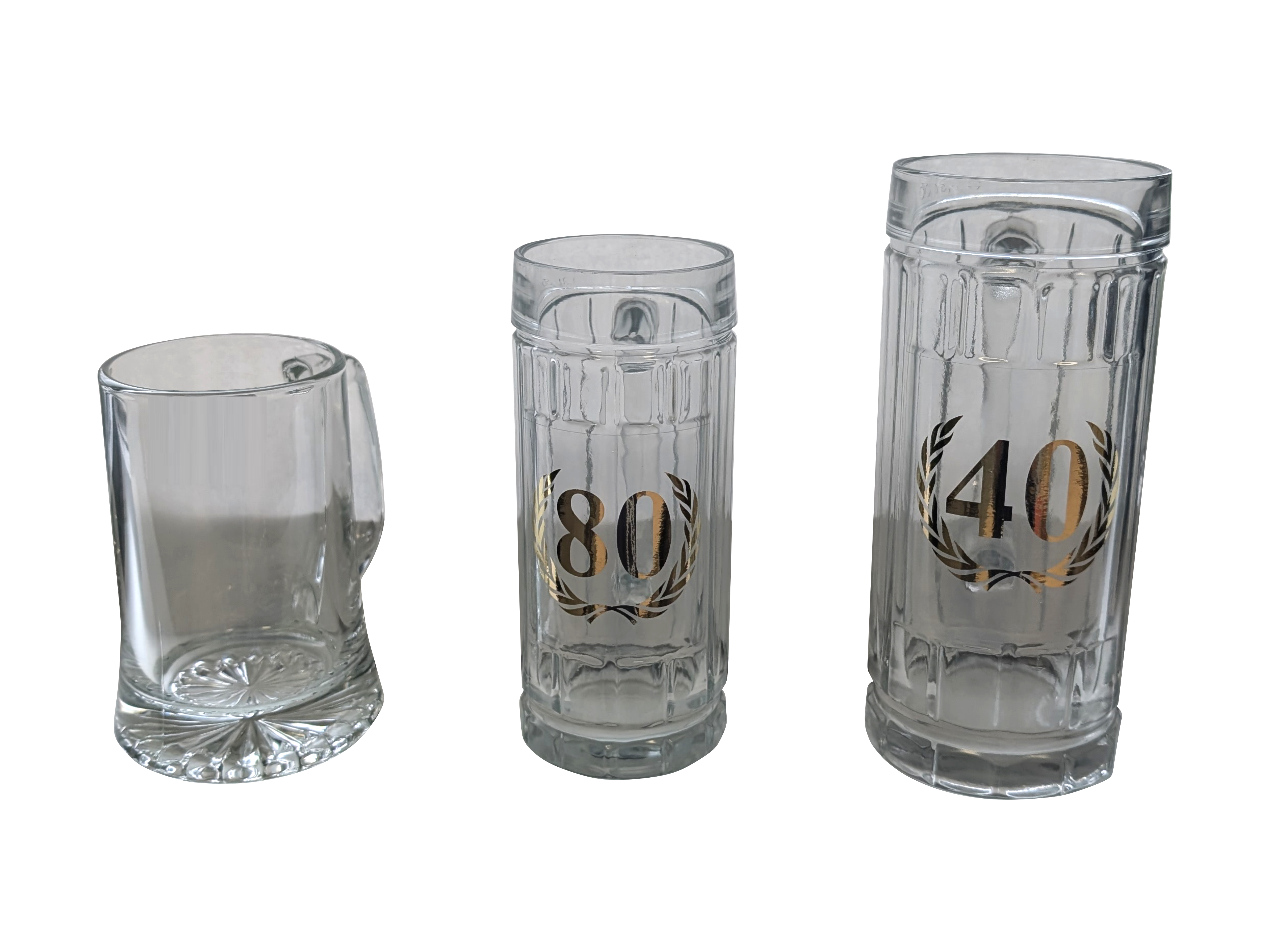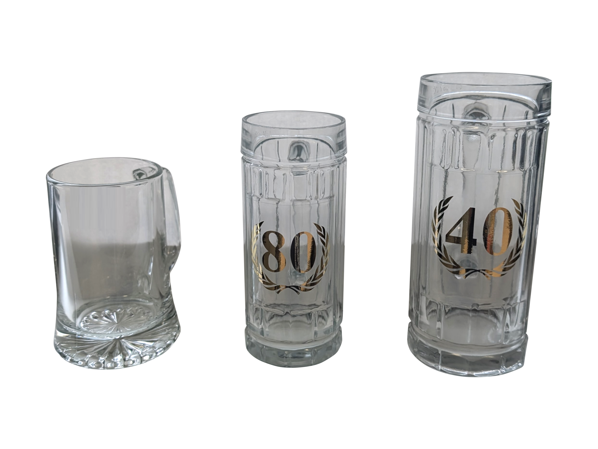 Trinkkrüge in verschiedenen Größen aus unserem Sortiment, auch mit eigener Gravur möglich.