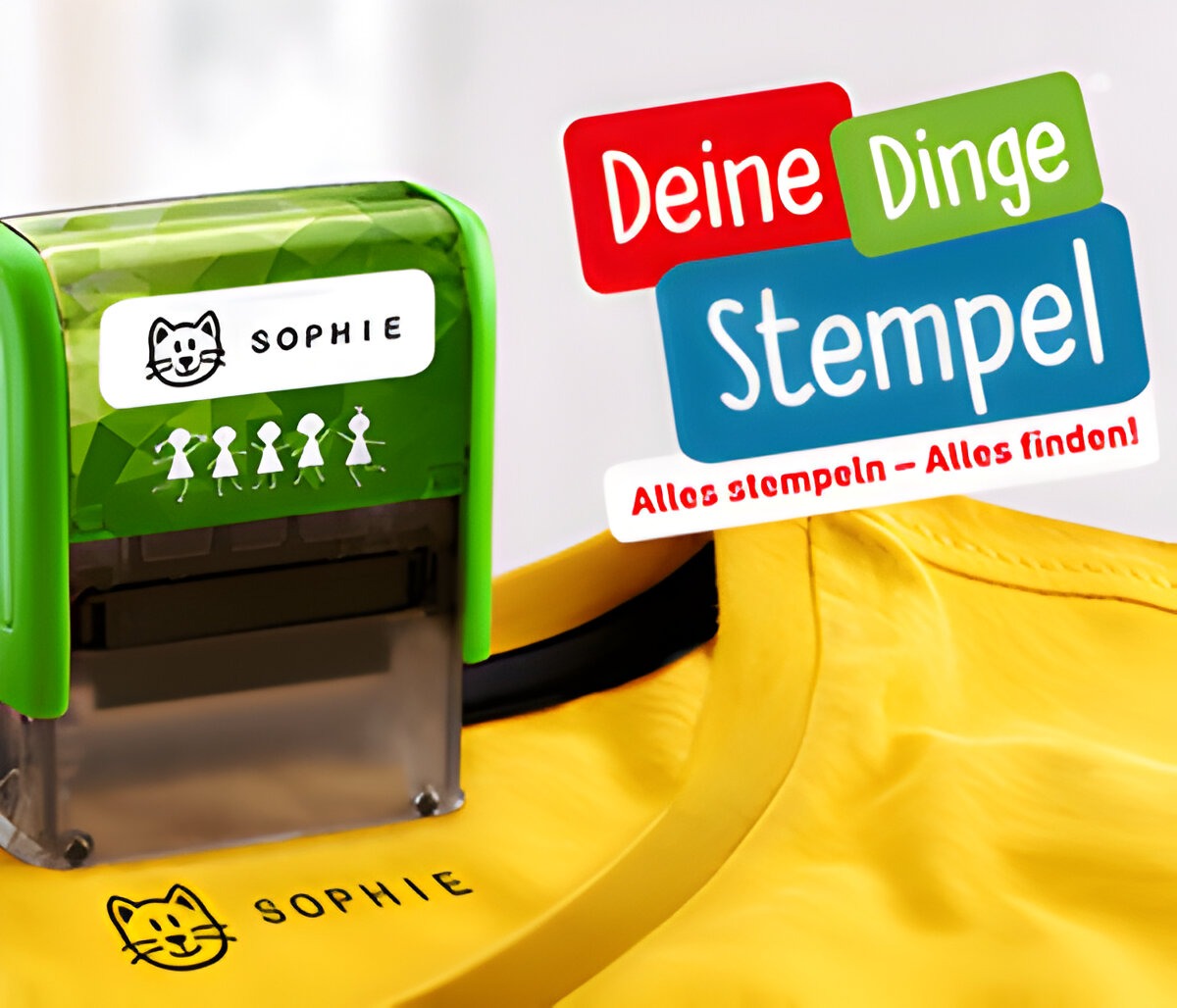 Wir geben Dingen einen Namen! Viele Eltern kennen das Problem: Das Kind kommt nach Hause von Schule, Training oder Kita und … es fehlen Kleidungsstücke, Schuhe, Brotdose oder andere Gegenstände. Trodat hat mit dem „Deine-Dinge-Stempel“ eine Lösung, mit der bestempeln und markieren aller „deiner Dinge“, also Textil, glatte Oberflächen, Bügelvlies, etc. möglich ist. Alle Vorteile des Deine-Dinge-Stempels: